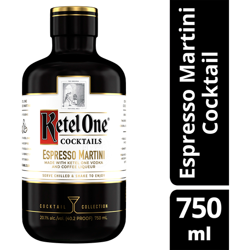 Indulge in the convenient luxury that Ketel One Espresso Martini Cocktail, part of the ready-to-serve Cocktail Collection and made with Ketel One Vodka, has to offer. Experience the taste inspired by traditional distilling expertise with Ketel One Family Made Vodka. Our vodka is carefully crafted using non-GMO European wheat for smoothness and neutrality. Distilled in copper pot stills, filtered over charcoal and stored in lined tanks, our vodka offers a crisp, unique flavor and strong finish. The Ketel One Espresso Martini Cocktail has an aroma of roasted espresso, dark chocolate, and fruit. On the palate is a sophisticated martini layered with espresso, dark chocolate, and orange with a smooth, lingering, chocolate finish. Simply serve straight from the bottle or add to a glass with ice for a convenient, ready-to-serve cocktail. Includes one 20.1% alc./vol. 750 mL bottle of Ketel One Espresso Martini Cocktail. Please drink responsibly.