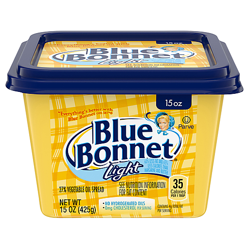 Blue Bonnet Light Vegetable Oil Spread provides smooth, buttery flavor to transform any meal. It's easy to spread on all of your favorite foods. A staple in any kitchen, this spreadable butter substitute is delicious on your morning toast or warm muffins. This vegetable oil spread is a perfect option for anyone looking to cut back on calories and fat without sacrificing taste. This butter spread alternative is full of flavor, but it contains no hydrogenated oil and 0mg cholesterol per serving (see nutrition information for fat and saturated fat content). It's keto friendly with 0 grams of protein, 1 gram net carbs (1g total carbs minus 0g dietary fiber) and 0 grams added sugar per serving. It also fits a low carb lifestyle with 1 gram net carbs per serving (1g total carbs minus 0g dietary fiber). This 15 ounce tub makes it easy to spread and keeps it fresh until you're ready to use it. For over 60 years, consumers have trusted Blue Bonnet to deliver quality spreads at the right price.