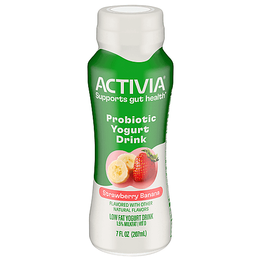 Help support your gut health* with Activia Strawberry Banana Probiotic Lowfat Yogurt Drinks. Creamy, cool and totally delicious, this strawberry banana yogurt drink with essential nutrients** goes anywhere, so you can sip it anytime. Plus, each bottle is packed with our proprietary blend of live and active cultures and our exclusive probiotic. Probiotics are the living microorganisms that have been studied and shown to provide specific health benefits, including supporting gut health.* Activia yogurt products contain Bifidobacterium lactis DN 173-010/CNCM I-2494, which has been studied and shown to survive passage through the gastrointestinal tract. Making Activia probiotic yogurt drinks a part of your day is an easy way to help support your gut health.* Activia drinkable yogurt is a quick, refreshing way to get probiotics into your routine, as breakfast smoothies or snacks on the go. Your gut is where it all begins. Start with Activia – the #1 doctor-recommended probiotic brand.*** *Enjoying Activia twice a day for two weeks as part of a balanced diet and healthy lifestyle may help reduce the frequency of minor digestive discomfort, which includes bloating, gas, abdominal discomfort & rumbling. **Contains at least 10% DV of Calcium & Vitamin D per serving. ***Based on a 2024 national weighted survey of 300 doctors.