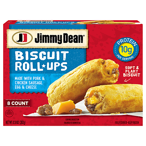Help add power to your mornings with Jimmy Dean Frozen Sausage, Egg and Cheese Biscuit Roll-Ups. Savory pork sausage, real eggs and cheese are rolled into a soft and flaky biscuit for a delicious, portable breakfast at home or on the go. Made with no high fructose corn syrup and containing 10 grams of protein per serving, our biscuit roll-ups provide a protein packed option for your breakfast routine. Simply microwave and serve for an on-the-go breakfast. Includes one 12.8 oz package of 8 sausage, egg and cheese biscuit roll-ups. Jimmy Dean once said, "Sausage is a great deal like life. You get out of it what you put in." Which pretty much sums up his magic formula for having a great day. Today, the Jimmy Dean Brand team brings you many ways to add some sunshine to your morning. Today's your day to shine on.