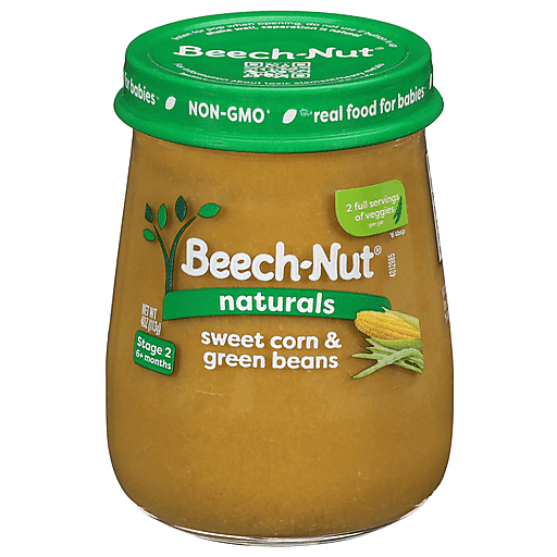 Beech-Nut Naturals Baby Food is made with simple, non-GMO ingredients. Our sweet corn & green bean baby food puree has no artificial preservatives, colors or flavors and no added sweeteners--just what you'd expect for baby's first foods. Our fruits and veggies are gently cooked to preserve color, flavor, and nutrients to create a puree that's perfect for introducing solids. Free of the following allergens: dairy, gluten, peanut, soy, egg. This Stage 2 baby food jar is ideal for your baby 6 months and up.