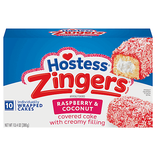 Add a little Zing to your snacking routine with HOSTESS ZINGERS. Raspberry iced cake rolled in coconut — yummilicious! And don't forget the crème center that will leave you savoring the moment. These delightful treats are individually packed for freshness and easy to grab. LIVE YOUR MOSTESS with HOSTESS Raspberry ZINGERS and share them with family and friends.