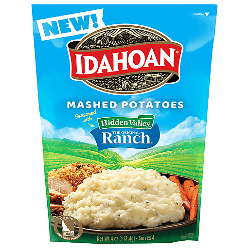 Whip up delicious, rich mashed potatoes in minutes with Idahoan® Mashed Potatoes seasoned with Hidden Valley® Original Ranch®! Our mashed potatoes are always made with 100% real Idaho® potatoes and are perfectly blended with the zesty ranch seasoning America knows and loves. When our potatoes meet the creamy blend of herbs and spices, you know it’s ranch and potatoes done right. Perfect as a side dish or in a variety of wholesome recipes, Idahoan® Mashed Potatoes seasoned with Hidden Valley® Original Ranch® is easy to prepare and ready in minutes. Simply heat water on stovetop or in a microwave, add the entire pouch of mashed potatoes, and voilà—dinner made easy! Whether you’re looking for traditional comfort food, or wanting a quick, convenient snack, Idahoan Mashed Potatoes seasoned with Hidden Valley® Original Ranch® delivers.