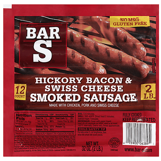 Bar S Smoked Hickory Bacon & Swiss Cheese Sausage 12 ea