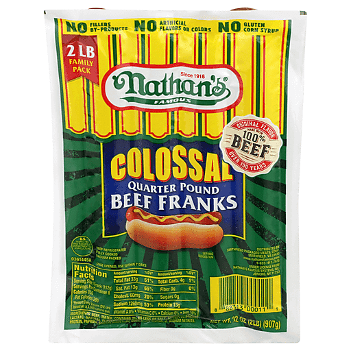 Nathan's Famous Colossal Quarter Pound Beef Franks Family Pack 32 oz