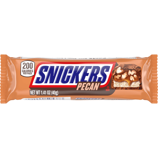 Just when you thought the satisfaction of SNICKERS couldn't get any better—give a warm welcome to our NEW SNICKERS Pecan Milk Chocolate Bars. This tasty treat is here to bring you sweet joy and comforting satisfaction with every delicious bite. Satisfaction is guaranteed with this comforting, buttery, and rich combination of pecans, caramel, and milk chocolate.
